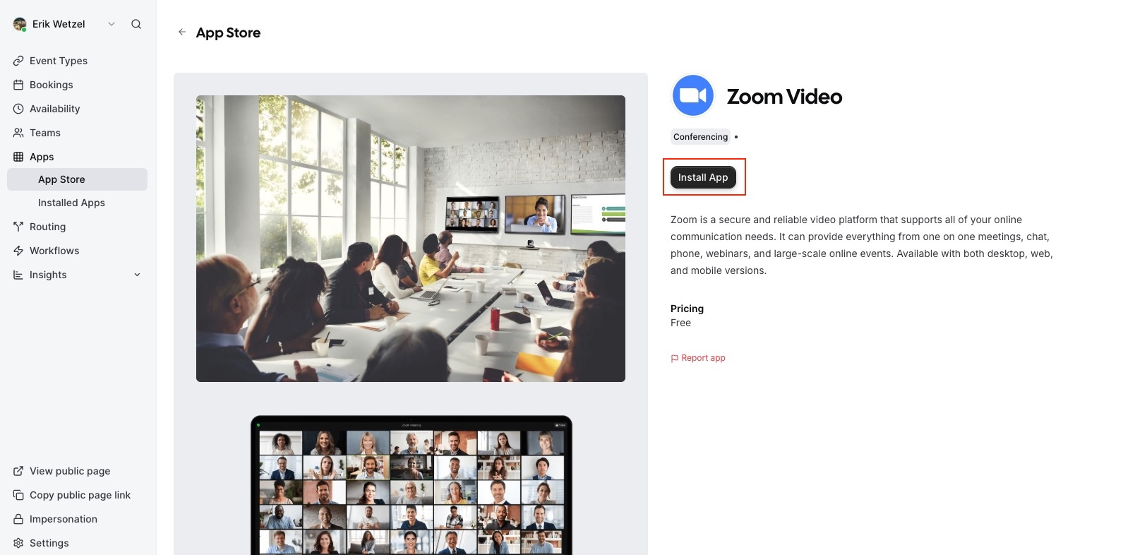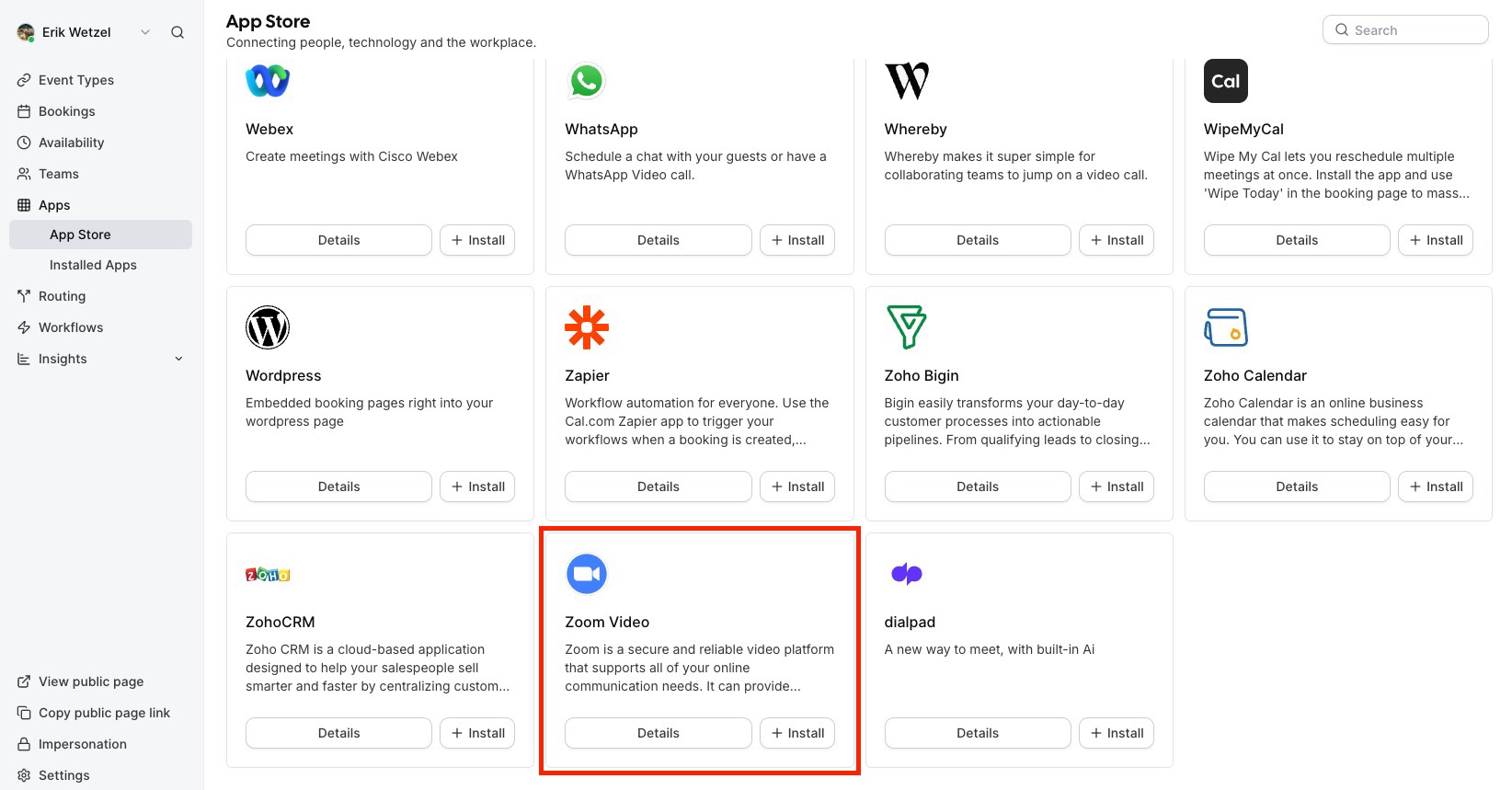 Once you have added Zoom as your event-type location, you will see it as shown in the image below. Click on Save, and all your meetings should now have Zoom video as the default location.